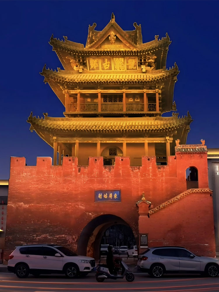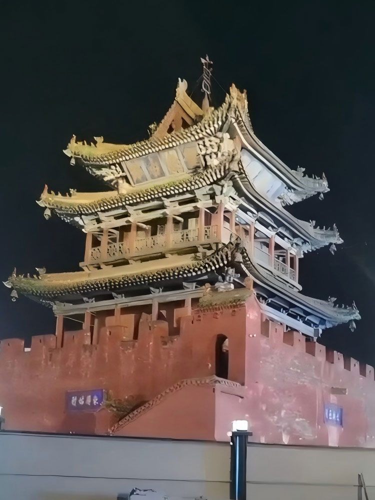 簡(jiǎn)介—— 隰縣鼓樓又稱(chēng)大觀樓,位于縣城正中心,是全國(guó)現(xiàn)存的20多處明代鼓樓中的一座。它位于縣城正中心,占地196平方米,通高約27米,磚拱門(mén)洞,十字貫通,至今已有390多年的歷史,是隰縣的象征。2025我司對(duì)鼓樓做了整體的亮化工程,采用大功率投光燈,在鼓勵(lì)的四角確定安裝機(jī)位,對(duì)鼓樓進(jìn)項(xiàng)了整體的打亮,不但很好的保護(hù)鼓樓外立面不被破