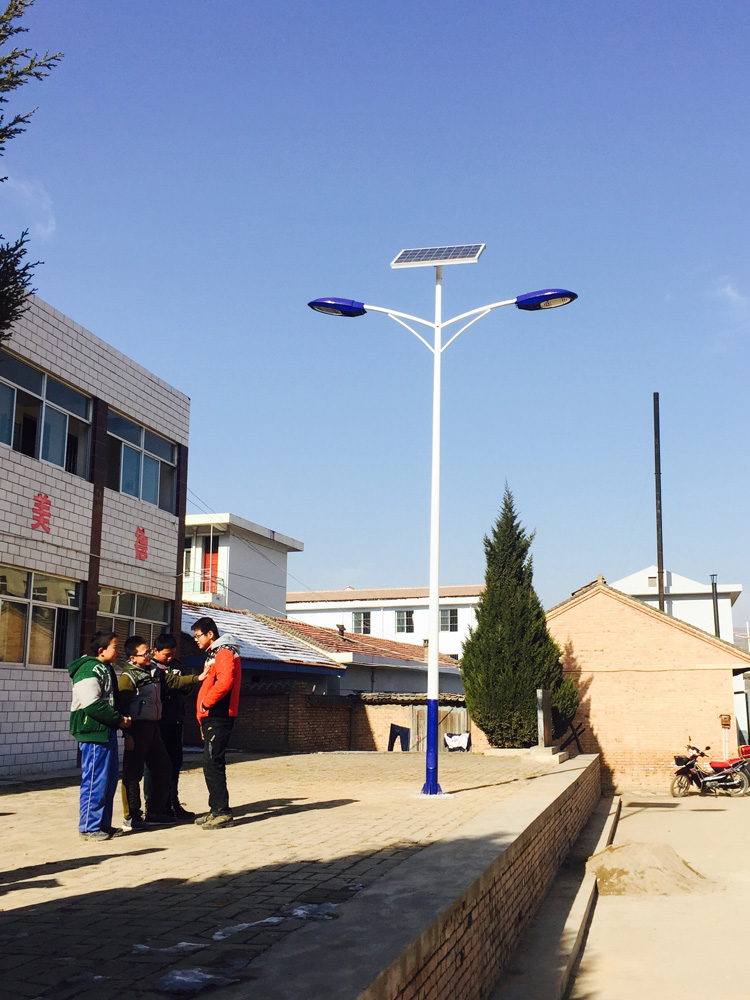 甘肅省平?jīng)鍪袑W(xué)校路燈工程,采購的是我蘭光照明單板雙頭太陽能路燈,甘肅的冬季天黑的比較早,為了給校園操場提供照明路燈,安裝節(jié)能型的太陽能路燈,在學(xué)校的操場和道路上安裝,給同學(xué)們提供夜間照明。