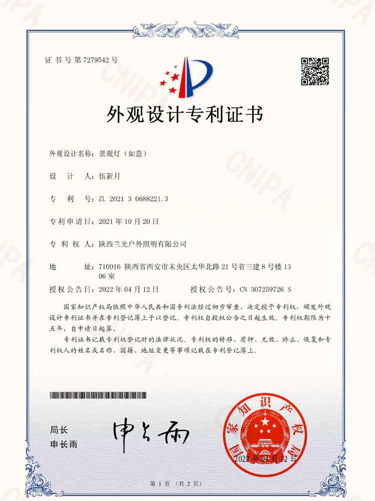 簡介—— 設計要點:采用傳統如意造型為元素,搭配精致曲度造型,整體設計精致大方,宣揚傳統文化。 專利種類:外觀設計 專利號:ZL 2021 3 0688221.3